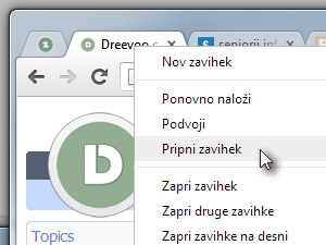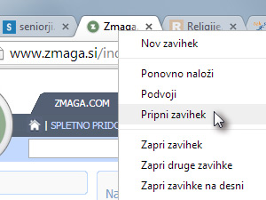 Potem pa na poljubnega kliknite z desnim miškinim gumbom in izberite Pripni zavihek.