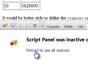 V zgornjem delu dodatka Firebug boste našli tudi kontrole za izvajanje programa.