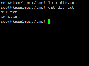 Če za ukazom uporabimo znak >, potem se bo izpis programa namesto na zaslon izvedel v datoteko.