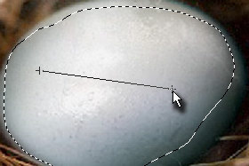 ![]() Sedaj pa s tem orodjem povlecite iz levega proti desnemu delu jajca (glej sliko) |
