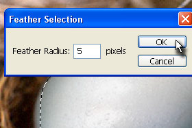 ![]() Odpre se okno Feather selection, kjer bomo določili glajenje robov. |