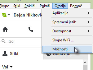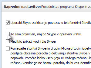 In možnost Ko sem prijavljen, naj bo Skype v opravilni vrstici, naj ne bo vklopljena (glej sliko).