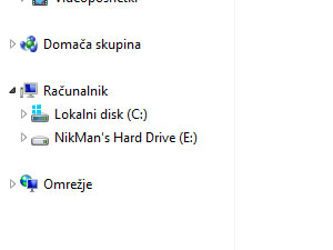 ![]() Opazili boste, da je vaš računalnik zaznal disk in mu nastavil tudi črko pogona. V mojem primeru je to NikMan's Hard Drive na E disku.