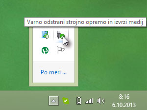 ![]() Sedaj pa bomo disk varno izklopili. Kliknite na Pokaži skrite ikone. |
