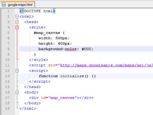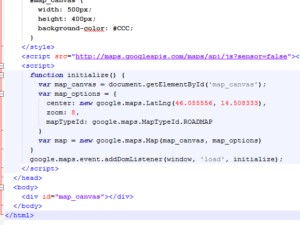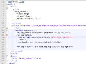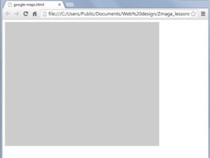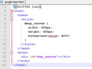 ![]() Z uporabo CCS v <head> definiraj <style>, v katerem so mere za višino in širino map_canvas okna. Dodajmo še sivo barvo za ozadje map_canvas okna. |