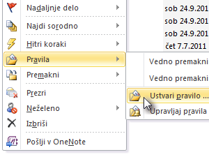 ![]() Izberite možnost Pravila -> Ustvari pravilo ... |