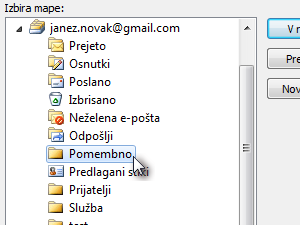 ![]() Odprl se vam bo seznam map, kje izberete mapo, v katero se bodo od sedaj naprej shranjevala sporočila od izbrane osebe. |