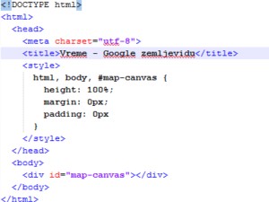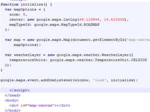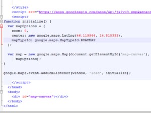 Potem dodamo še JavaScript del kode, ki poskrbi da se Google zemljevid pojavi na željenem mestu.
