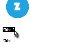 Spodaj pod sliko napišite Slika 1 in Slika 2, kot je razvidno na moji sliki. Potem pa z miško označite sliko. |