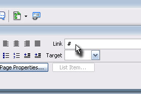 V polju Link vpišite znak # ali pa povezavo na spletno stran.