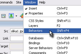 Zgoraj kliknite na Windows in izberite Behaviors.