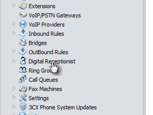 V levem meniju kliknite na Digital Receptionist, nato kliknite na Add Digital Receptionist.