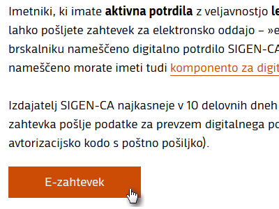 Če ste imetnik obstoječega potrdila, lahko dva meseca pred potekom potrdilo podaljšate tako, da oddate e-zahtevek za ponovno pridobitev potrdila.