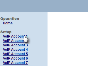 Kliknite na VoIP Account 1. Če nastavljate drug znamke IP telefon kliknite na Account oz. poglejte navodila.