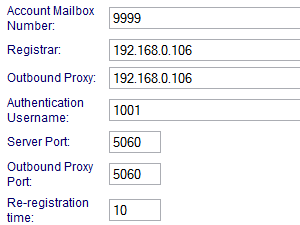 Registrar: je IP / domena vašega SIP ponudnika. Outbound Proxy: je IP / domena vašega SIP ponudnika (lahko se razlikuje od registrar IPja / domene). Authentication Username: Uporabniško ime SIP računa Ostale podatke pustite privzete. Kliknite Save, ter po potrebi ponovno zaženite napravo. |