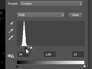 ![]() Nato pa še črni drsnik povlecite v desno, da boste dobili lepo sliko z zvezdami v ozadju. Črni drsnik predstavlja temne dele fotografije (sence), beli pa svetle (svetlobo).