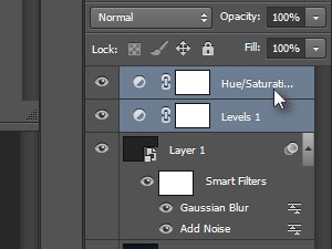 ![]() Kliknite na Create new fill or adjustment layer in izberite Hue/Saturation...