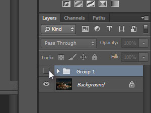 ![]() Novo ustvarjena skupina vsebuje vse tri prej označene layerje. Kliknite na ikono z očesom, da jo boste skrili.
