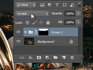 ![]() Nastavite skupini senčenje na Screen (glej sliko). |
