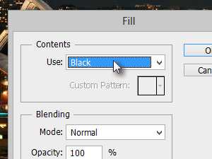 ![]() Kliknite zgoraj na Edit in izberite Fill... V novem oknu Use nastavite na Black in kliknite na gumb OK. |