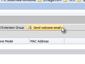 Kliknite na Send welcome email ter počakajte par trenutkov da se email pošlje. Za uspešno poslan email, je potrebno imeti vnešen email naslov v interni številki. To naredite s dvojnim klikom na interno številko ter vnesite email naslov. |