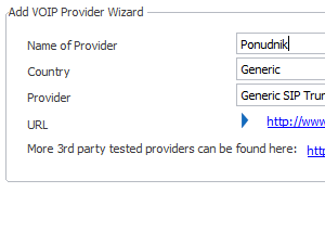 Bližnica za hitro dodajanje se nahaja v zgornjem meniju pod imenom Add VoIP Provider Wizard. |