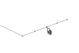 Držite sedaj z miško na točki, ki ste jo prej razpolovili (glej sliko) in jo malo premaknite.