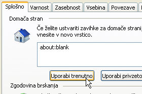 Odpre se novo okno z nastavitvami. Kliknite na gumb Uporabi trenutno (glej sliko). |