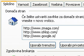 Sedaj bomo Internet Explorerju določili, da naj vse te tri strani odpre ob samem zagonu programa.