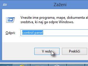 ![]() Pritisnite Win+R in zaženite Nadzorno ploščo z ukazom control panel. |