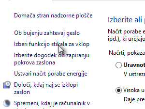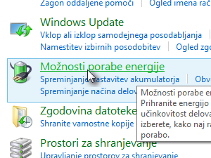 ![]() Izberite podkategorijo Možnosti porabe energije. |