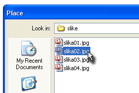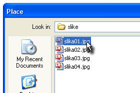 Odpre se okno, kjer označite prvo sliko in kliknite na gumb Place.