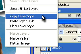 Kliknite na zgornji layer z desnim miškinim gumbom in izberite Copy Layer Style. |