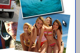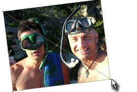 Sedaj pa z miško držite za rob slike in jo pomanjšajte ali povečajte. Držite tipko SHIFT, da se bo to zgodilo v pravem razmerju. Potem pa sliko obrnite (glej sliko) tako, da se z miško premaknete na rob slike in premikajte v smeri urinega kazalca. Pri obračanju se pojavi miškin kurzor, ki prikazuje obračanje slike. Pritisnite tipko ENTER, da potrdite spremembe. |