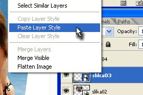 Kliknite nanj z desnim miškinim gumbom in izberite Paste Layer Style. |