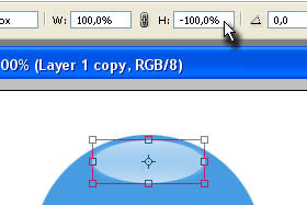 Pritisnite tipko V, da izberete Selection Tool. Potem pa s tem orodjem premaknite ustvarjen odsev (elipso) na pravi del kroga (glej sliko). |