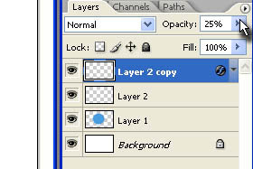 V paleti layerjev določite dupliciranemu layerju Opacity na 25 (glej sliko). |