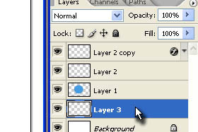 Potem pa z miško premaknite dupliciran layer na dno kroga (glej sliko). |