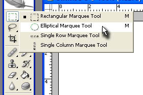 Držite z miško na orodju Rectangular Marquee Tool (bližnjica je tipka M), da se vam prikažejo ostala orodja. |
