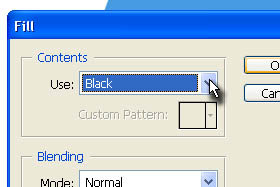Odpre se okno za polnjenje. V polju Use preko izbirnika določite Black in kliknite na gumb OK. |