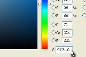 V polje # vpišite 479ce1 in kliknite na gumb OK. Nastavitili smo modro barvo, seveda pa lahko določite poljubno. Potem pa kliknite še enkrat na gumb OK, da zaprete okno Fill. |