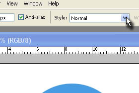 Zopet izberite orodje Elliptical Marquee Tool. Zgoraj v orodni vrstici določite Style preko izbirnika na Normal. |