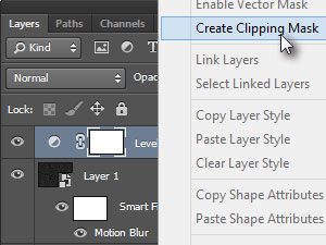 ![]() Ko bo ustvarjen nov nastavitveni layer, kliknite nanj z desnim miškinim gumbom in izberite Create Clipping Mask. |