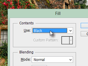 ![]() Kliknite zgoraj na Edit in izberite Fill... V novem oknu Use preko izbirnika določite Black in kliknite na gumb OK. |