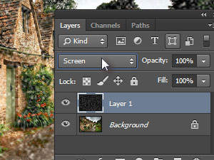 ![]() Določite novemu layerju senčenje na Screen. Screen odstrani črne barve.