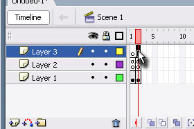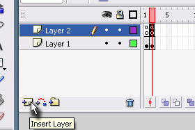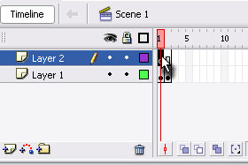 V polju Timeline za Layer 2 ponovno označite Frame 1.