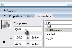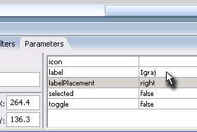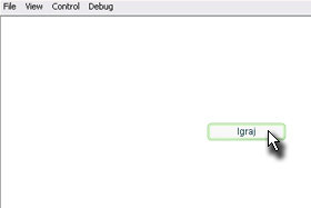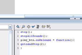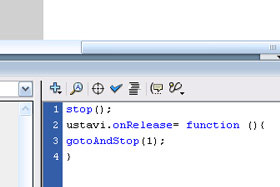 Kliknite nanj z desnim miškinim gumbom in izberite Actions. Prikaže se polje za dodajanje skript. Vpišite naslednjo: stop(); stopAllSounds(); igraj.onRelease = function(){ gotoAndStop(2); } |