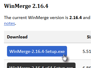 ![]() Aplikacijo dobite na spletni strani: https://winmerge.org/downloads Izberite WinMerge Setup, da namestitveni program prenesete na svoj računalnik. |