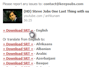 Kliknite na Download SRT, da podnapis prenesete na svoj računalnik. |