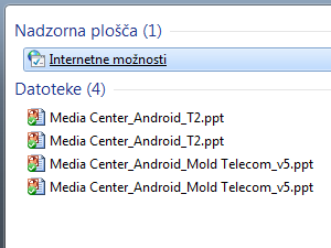 Na Namizju kliknite na gumb Start, v iskalno polje vpišite Internetne možnosti ter program odprite.